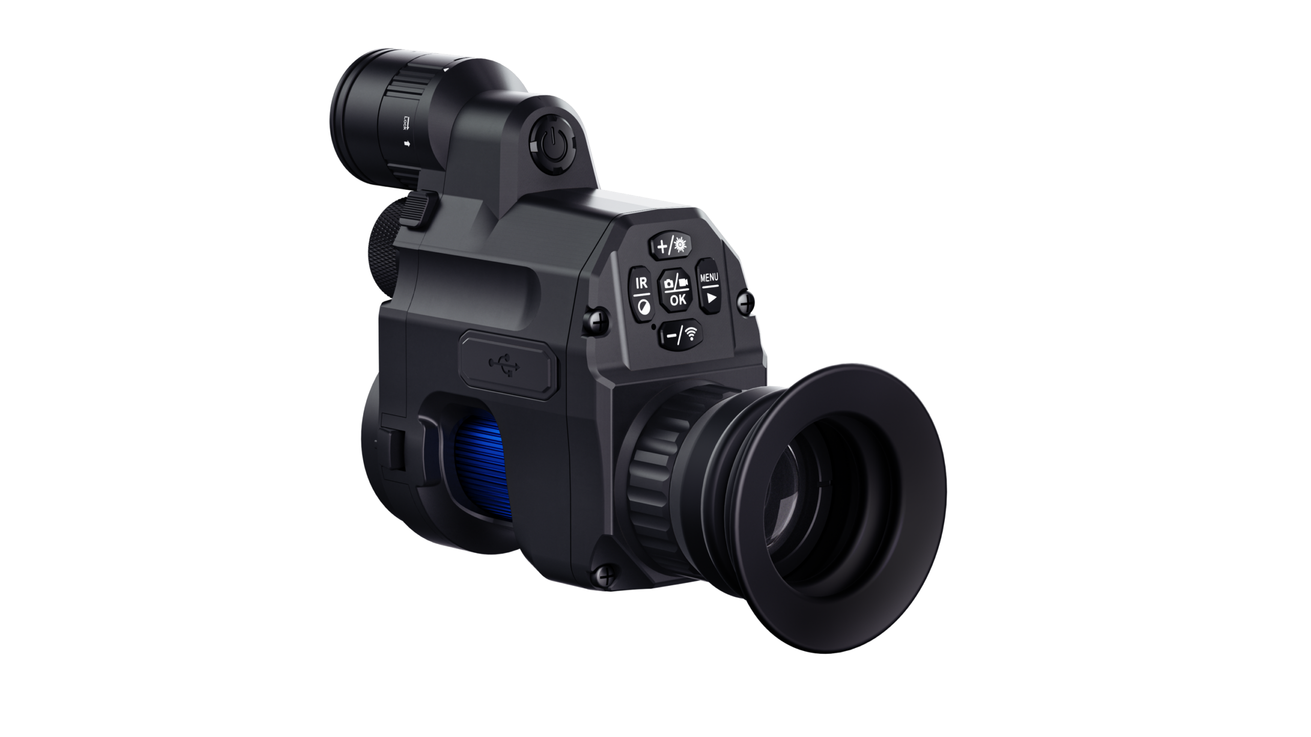 Crisp, high-contrast display ensures comfortable viewing and enhanced image clarity. - Detachable 850nm IR Illuminator